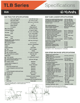 Kubota 2.4L 4-cyl diesel Gross PTO 44 Hydro PTO 42 4WD HST Loader ...